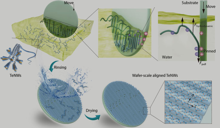 " We achieve highly oriented arrays of tellurium nanowires on various substrates with wafer-scale scalability by a facile lock-and-shear strategy."
