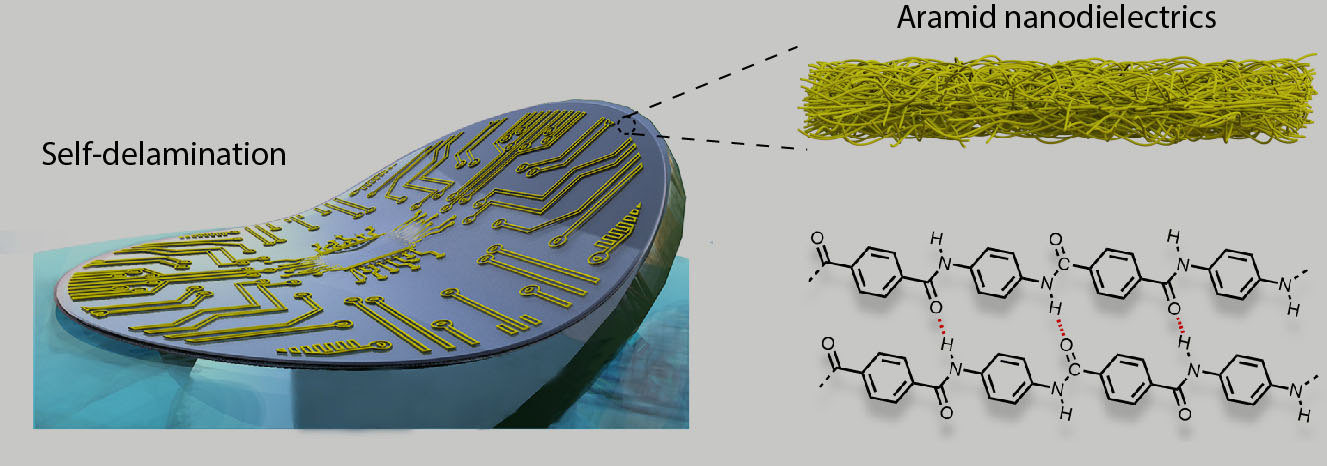" We demonstrate self-delaminated aramid nanodielectrics, which enable any skin-like electronics easily exfoliated from the processing substrates after complicated nanofabrication."